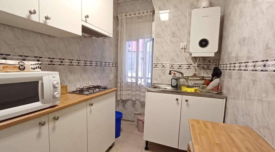 La distribución incluye un acogedor salón comedor con acceso a una terraza, un baño completo y una cocina luminosa. Todas las estancias son exteriores, lo que garantiza una excelente iluminación y ventilación natural durante todo el día. Las ventanas son de aluminio y el suelo de parque.